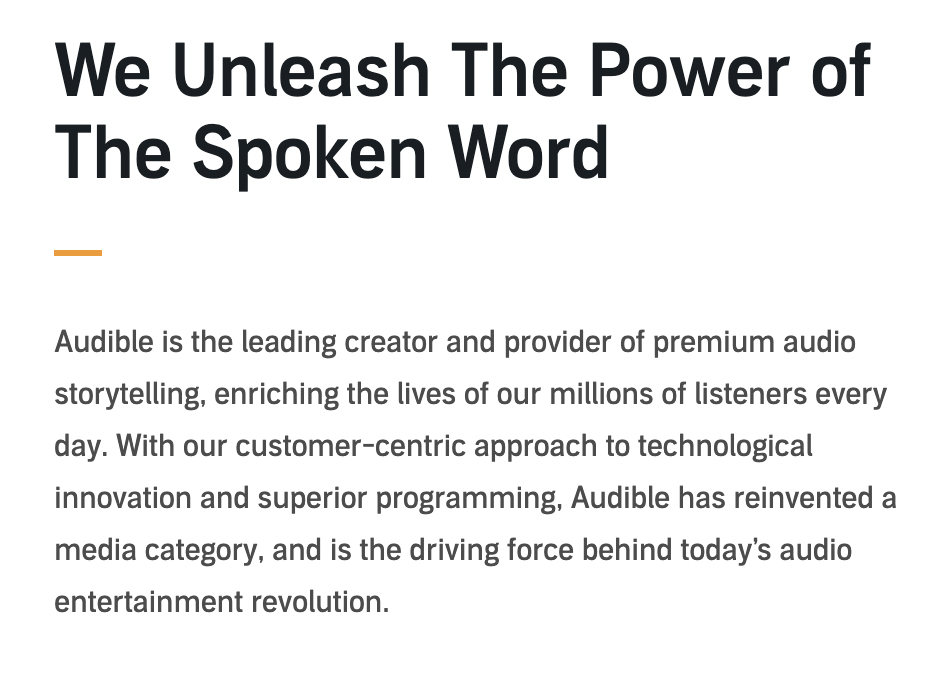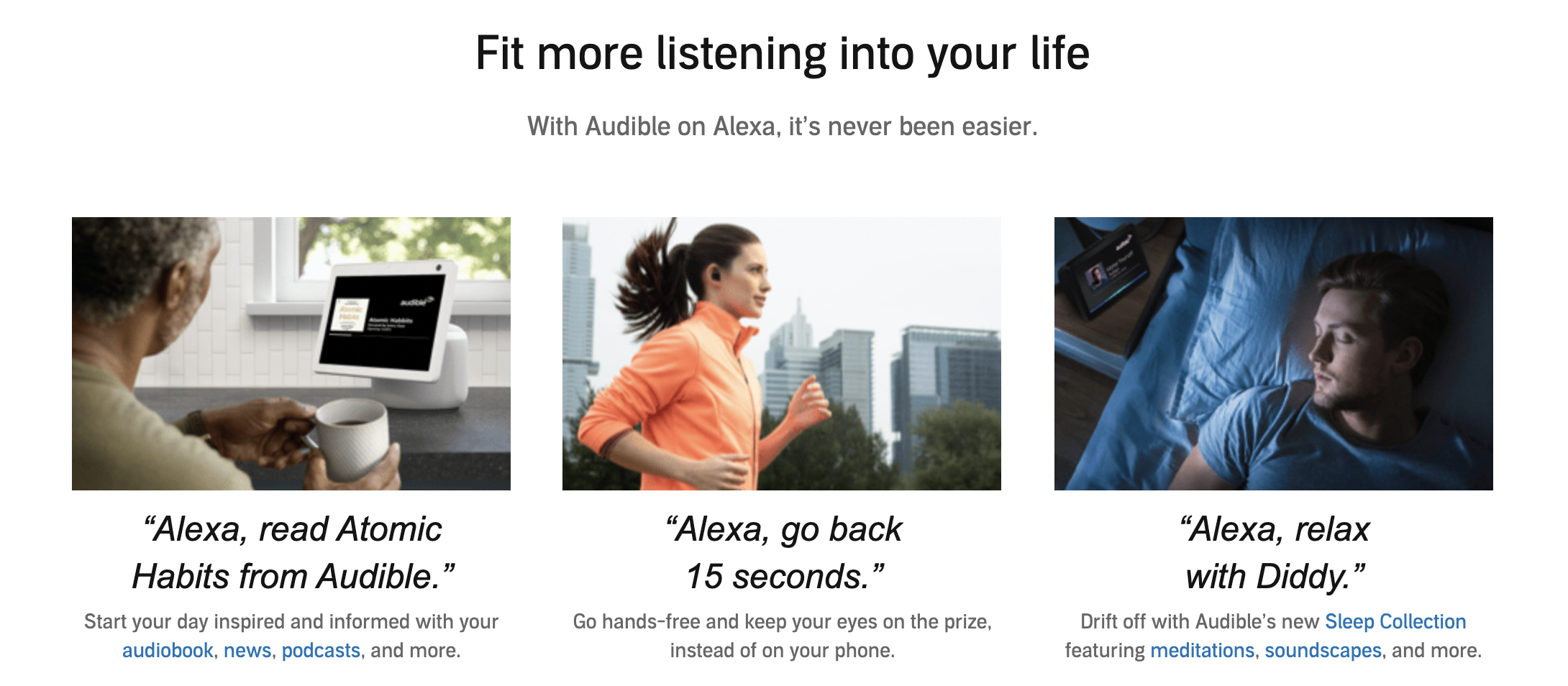 Working closely with the brand’s internal marketing teams, I’ve created and optimized the language and brand voice for content on the Audible App, Audible.com, and Amazon.com in the U.S., U.K., Mexico, and Germany. Next step: Italy.